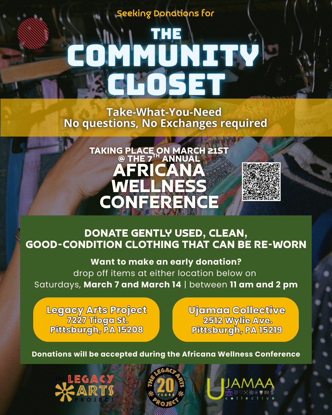 Join The Legacy Arts Project and Ujamaa Collective for a day of community, connection, and healing at the 2025 Africana Wellness Conference! This free event will be held on Saturday, March 15th, 2025, from 9:00 AM to 4:30 PM, and will feature:
