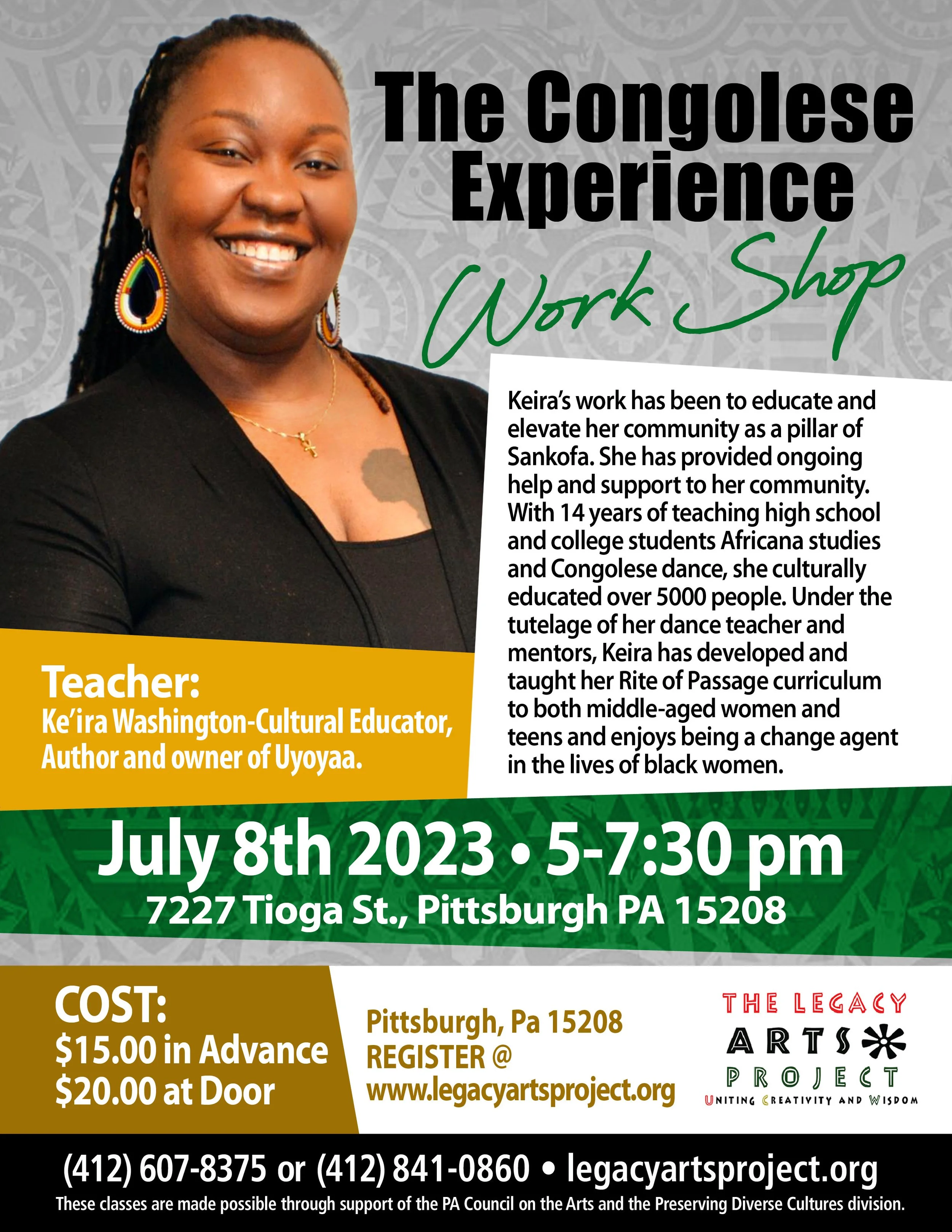 Location: Legacy Arts Studio – 7227 Tioga St – Pittsburgh, PA 15208